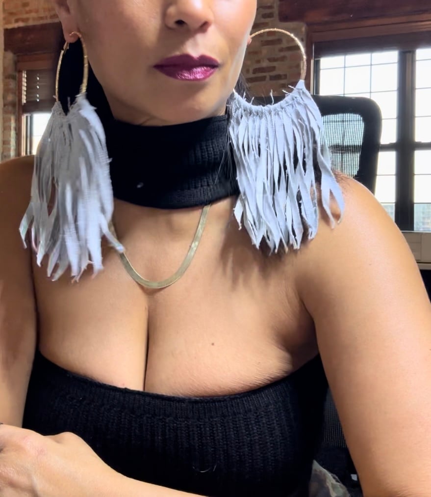 Inspired by Native American dream catchers. They are hand cut from Italian leather and used to make a beautiful cascading pair of earrings.